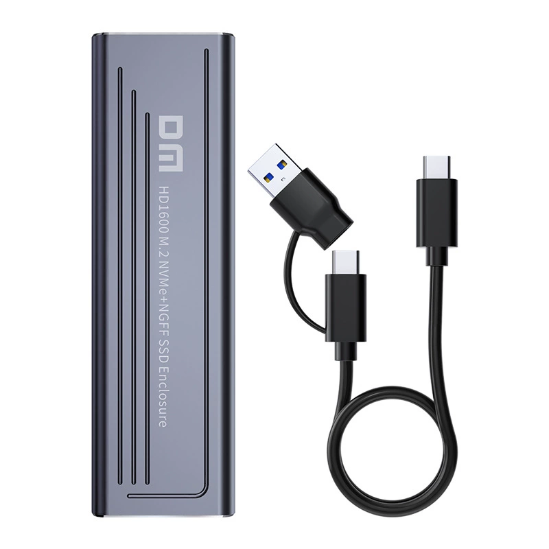 Двопротокольна зовнішня кишеня DM HD1600 призначена для твердотільних накопичувачів M.2 SSD. Підтримує накопичувачі протоколів NVMe (PCIe) та NGFF (Sata).